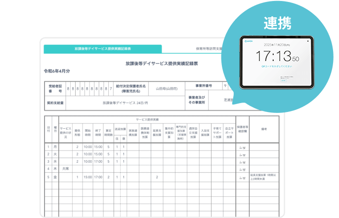 以前は、国保連請求ソフトに、児童一人ひとりの入退室時刻を転記していましたが、自動反映で、転記ミスもなく作業も楽になりました。