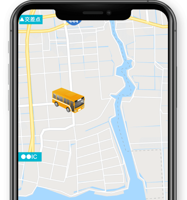 保護者アプリに送迎バスの運行状況を表示させるバスロケーションサービスです。
