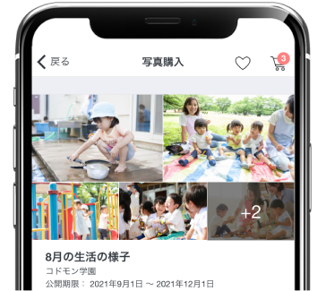 施設内で撮影した写真やイベントの写真を保護者に共有 / 販売できます。