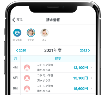 毎月の保護者への請求内容をアプリ上で共有することができます。