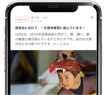 保育園からの連絡もアプリですぐに確認できるので見やすく、便利です。先生たちとの会話のきっかけも増え、コミュニケーションは以前より増えました。
