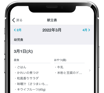 効果的に献立作成や栄養管理ができ、作成した献立表はアプリで保護者に配信できます。