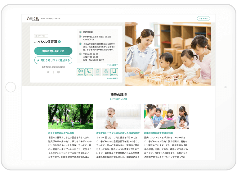 ホイシルでご紹介いたします。ホイシルをご利用いただく保護者や求職者に施設の魅力を効果的に伝えます。