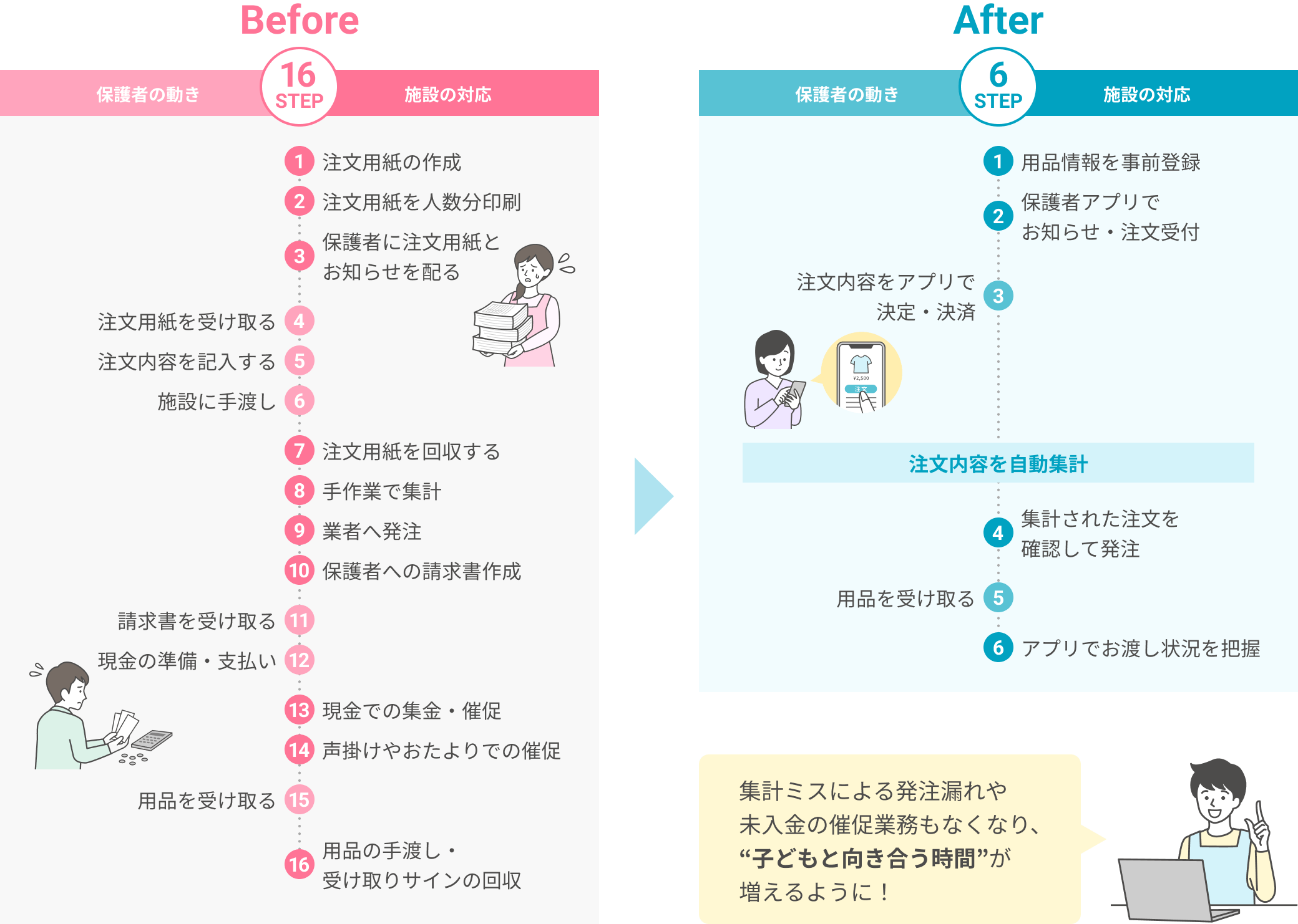 発注数や請求金額が自動計算されるので、集計作業がなくなりました。今後キャッシュレスが進むと、先生たちがお金のことを考える時間も無くなり、さらに負担が減るのではと考えています。
