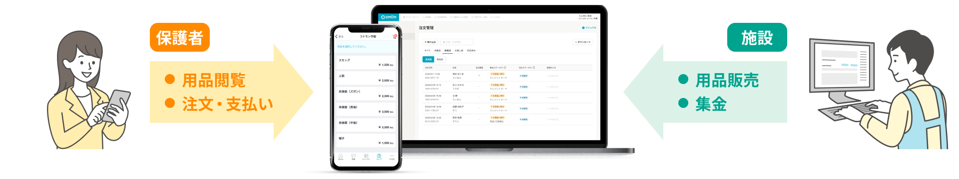 保護者への用品販売で