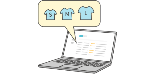 用品ごとの色やサイズなどのバリエーションの登録・注文受付も簡単。